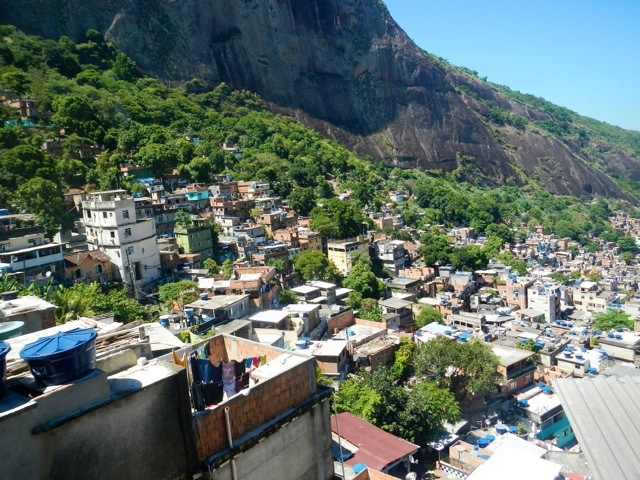 Patrick explained that the favela has everything available that a regular city does – you can still purchase anything you would normally. He explained that this particular favela was the largest in Rio and that between 69000 and 150000 people lived there. It is mind boggling to think about really. Sixty-nine thousand poor or socially disadvantaged people living in slum buildings from simple shacks to permanent structures. Most, especially those on the inside, bottom, there is definitely a hierarchy here, lack safe drinking water, electricity, sanitation, & other basic services. This specific favela had an official police station in it, which is relatively new and not particuclarly welcome. His comment was that both the police and the drug lords rule the same way, by intimidation.