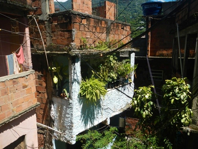 Our first stop was at the top of a building, about three floors up. We really got to see a panoramic view of the favela from there. You could see a large part of Rio, you could see the hierarchy of the favela and why the better homes are on the top & outside. We could see in the windows of a tiny school or kindergarten or maybe it was a daycare, I don’t know.
