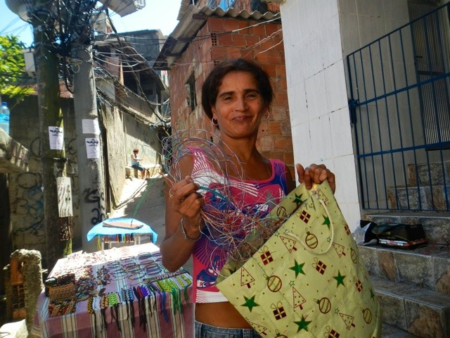 After that we went to a small artist studio. Patrick had told us that they (I don’t really know who they are) try to encourage people to find a way to earn an income without handouts. So the art studio is one way. It was small & uncomfortable but the artwork was full of talent. Many of the pieces were paintings of the favela & how the homes are set up with lots of colour in the paintings.