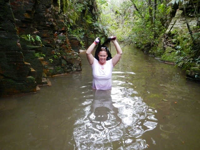 The following day we went to another park, Trilha do Sol. The hiking here was a little more difficult. Definitely doable but it was a little scary at times. Agnaldo, Jennifer’s husband and our tour guide likes to challenge people, encourages you to step outside the box and try new things. It was certainly something everyone could do but if you wanted to turn around you had the option. At more than one point we were wading through the river with our bags hiked up over our heads as the river was up to our waist. I don’t even think I was the shortest person, although I may have been. It was so much fun! I have to say that I had great shoes on so I was in better shape then others but it was still slow going as I was always worried about falling. I wouldn’t be able to run if I hurt myself, you know! Honestly, the view and the waterfalls are absolutely worth it!