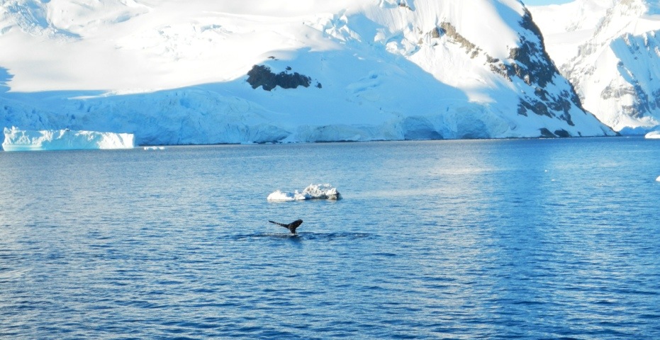 In the morning we were able to see Humpback whales and Minke whales swimming along with us. I took lots of photos. The sun was shining behind the mountains of the Antarctic Peninsula and it was a crystal clear, beautiful day.